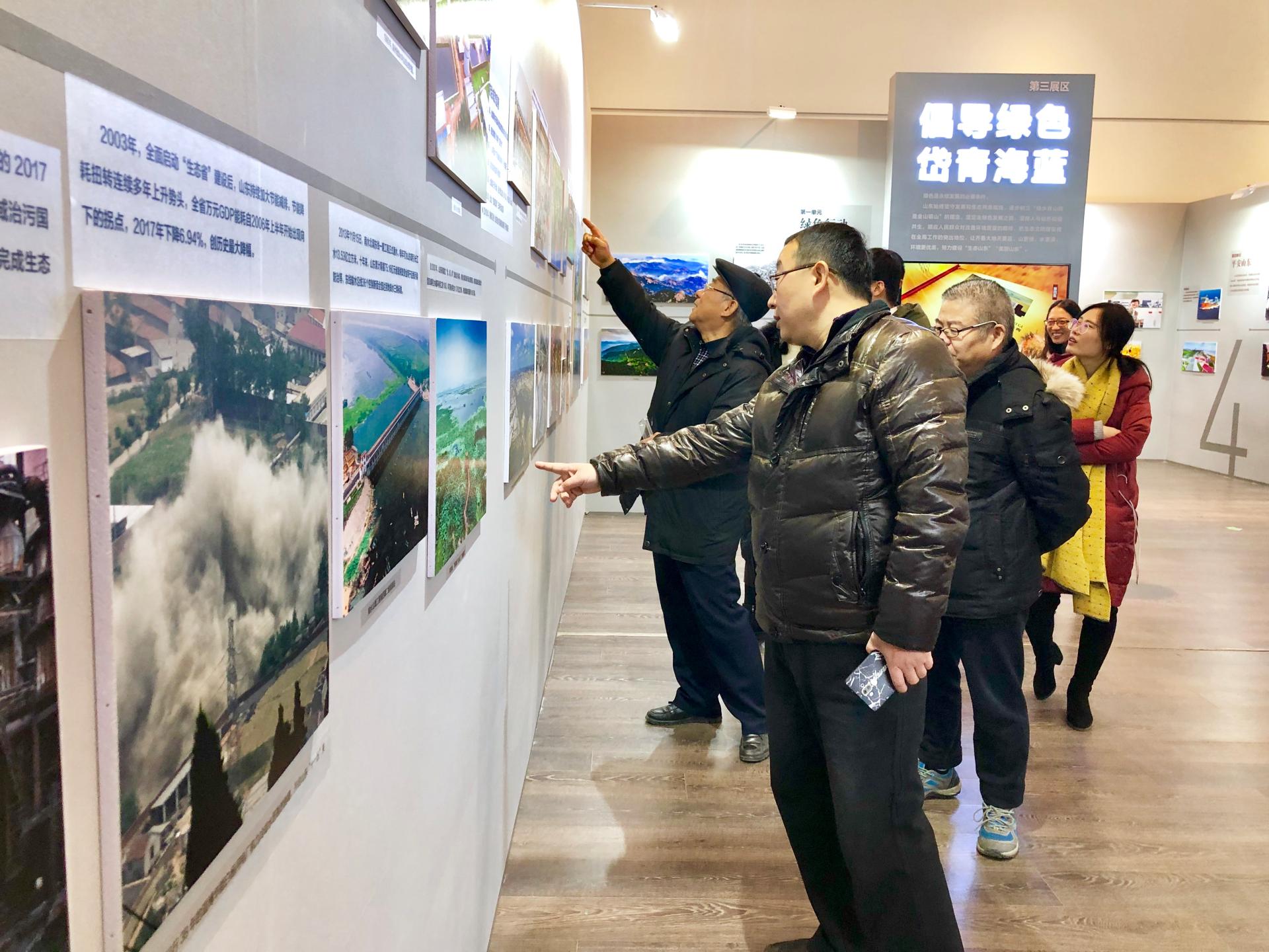 活动期间全体人员在山东书城工作人员的讲解下依次参观了以“崇尚创新、砥砺奋进”、“注重协调、行稳致远”、“倡导绿色、岱青海蓝”、“厚植开放、拥抱世界”、“推进共享、成就梦想”、“从严治党、不忘初心”和“聚焦生活点滴、记录社会进步”7个部分为主题的摄影作品展览,其展览内容涵盖了有关政治、经济、文化、社会、生态文明和党的建设等方面。摄影展现场,通过展出的420余幅珍贵照片和鲜活事例,集中展现了改革开放40年来特别是党的十八大以来,我省各级党组织团结带领全省人民推进改革开放的辉煌历程,生动再现了一代又一代山东共产党人艰苦奋斗、改革创新,带领全省人民创造幸福美好生活的伟大壮举。