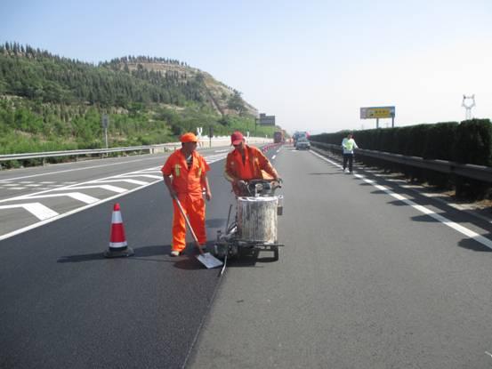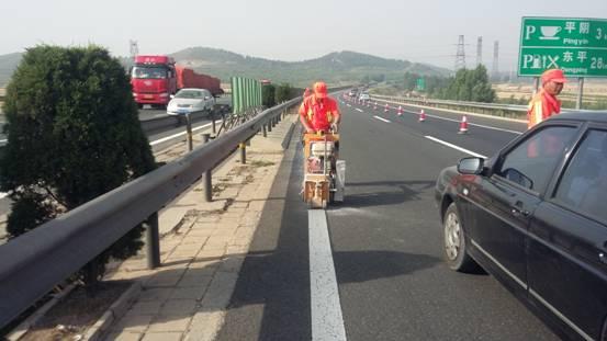 2015年济菏高速公路八标段:K98+800-K100+200主线标线施工现场
