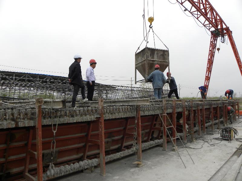 图:总监办监理工程师对30米箱梁预制混凝土浇筑进行旁站监理