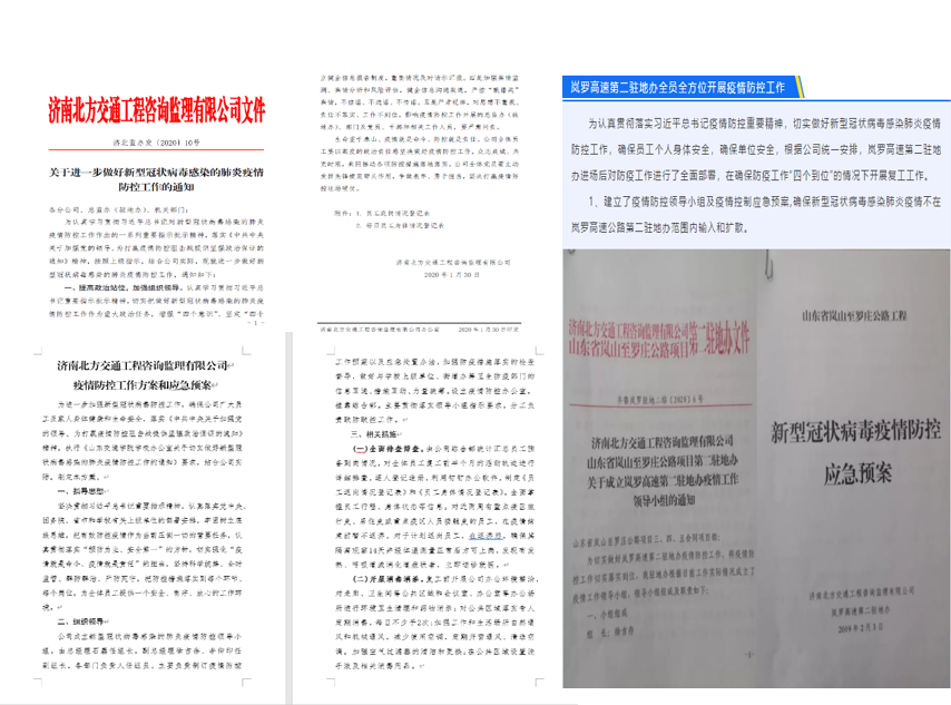 庚子年初,一场来势汹汹的新型冠状病毒席卷全国,疫情的严峻形势牵动着全国人民的心。面对突如其来的疫情,北方监理公司迅速安排布置疫情防控工作,以中央、省、市和山东交通学院等上级单位的精神和指示为行动指南,坚决贯彻坚定信心、同舟共济、科学防治、精准施策的总要求,以更坚定的信心、更果断的措施,制定有效措施、完善工作机制,为做好防控疫情工作起到了科学、精准、有效的效果。