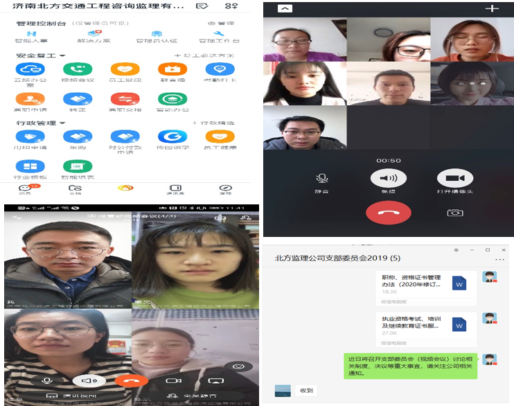 鉴于目前无法完全复工复产的情况,为了保障公司各项业务正常开展,公司采用线上协同办公方式,通过钉钉办公、腾讯会议、企业微信等途径实行网上办公,顺利召开了疫情防控工作会议、党支部支委会、部门工作会等,及时落实各项工作要求,起到了及时高效的工作成效,保证了公司各项工作有序开展。