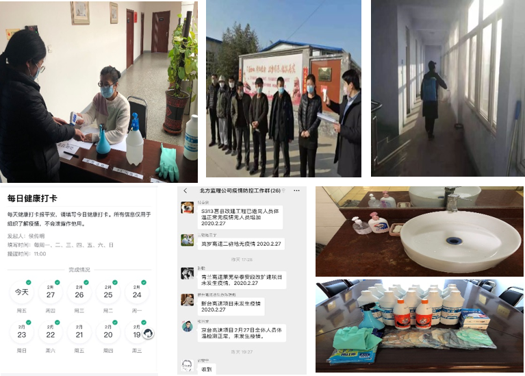 做好疫情防控工作,就要抓好疫情防控的重要环节。由于公司所属项目分布于山东省内各市且人员较分散,为了保障各项目人员生命健康,有效遏制疫情扩散,公司在第一时间对在职员工进行健康全面排查,针对前往疫情区、接触疫情区返回人员等重要环节进行摸排核实,做到了“一人一档”,通过钉钉系统“每日健康”功能模块,每日一报、实时掌握员工身体健康状况;各分公司、项目分别成立疫情防控领导小组,由各项目驻地负责人任组长、副驻地任副组长,根据各项目实际情况制定相应的疫情防控工作方案和应急预案。根据《北方监理公司关于进一步做好新型冠状病毒感染的肺炎疫情防控工作的通知》,要求各项目制定员工返岗计划和项目复工方案,做到提前谋划、统筹安排,避免人员集中、做到全面排查、进行逐一登记、落实请示汇报、严防疫情输入。同时,要求公司全部人员每日上报健康情况,安排公司机关部门轮岗值班,按时统计有关防控信息,并及时准确上报,做到了严防死守、不留隐患。