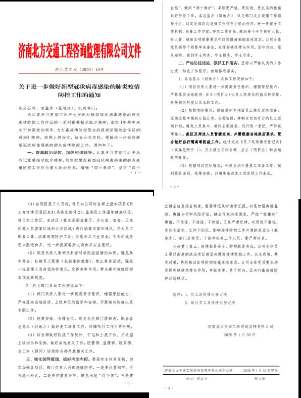 会上,全体与会人员重点学习了《关于切实做好新型冠状病毒感染的肺炎疫情防控工作的通知》内容和要求,经公司管理层商定,结合实际情况,要求公司各总监办(驻地办)、机关部门在第一时间成立疫情工作领导小组,进一步健全工作机制,夯实工作责任,对公司员工做到全面排查、进行逐一登记、严防疫情输入,确保各项部署要求和防控措施都能落地落实。同时要求公司全体党员领导干部要率先垂范,提高责任意识,增强管控能力,发挥好模范带头作用。各部门负责人也要进行统筹安排、合理分工,建立健全信息报告制度,加强舆情监测、舆情分析和风险评估,把控重要环节、避免出现“灯下黑”的情况,影响疫情防控工作的开展。
