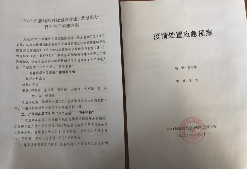 公司所属S313日滕线莒县绕城段改建工程、S301成初线大中修工程持续扎实推进疫情防控工作
