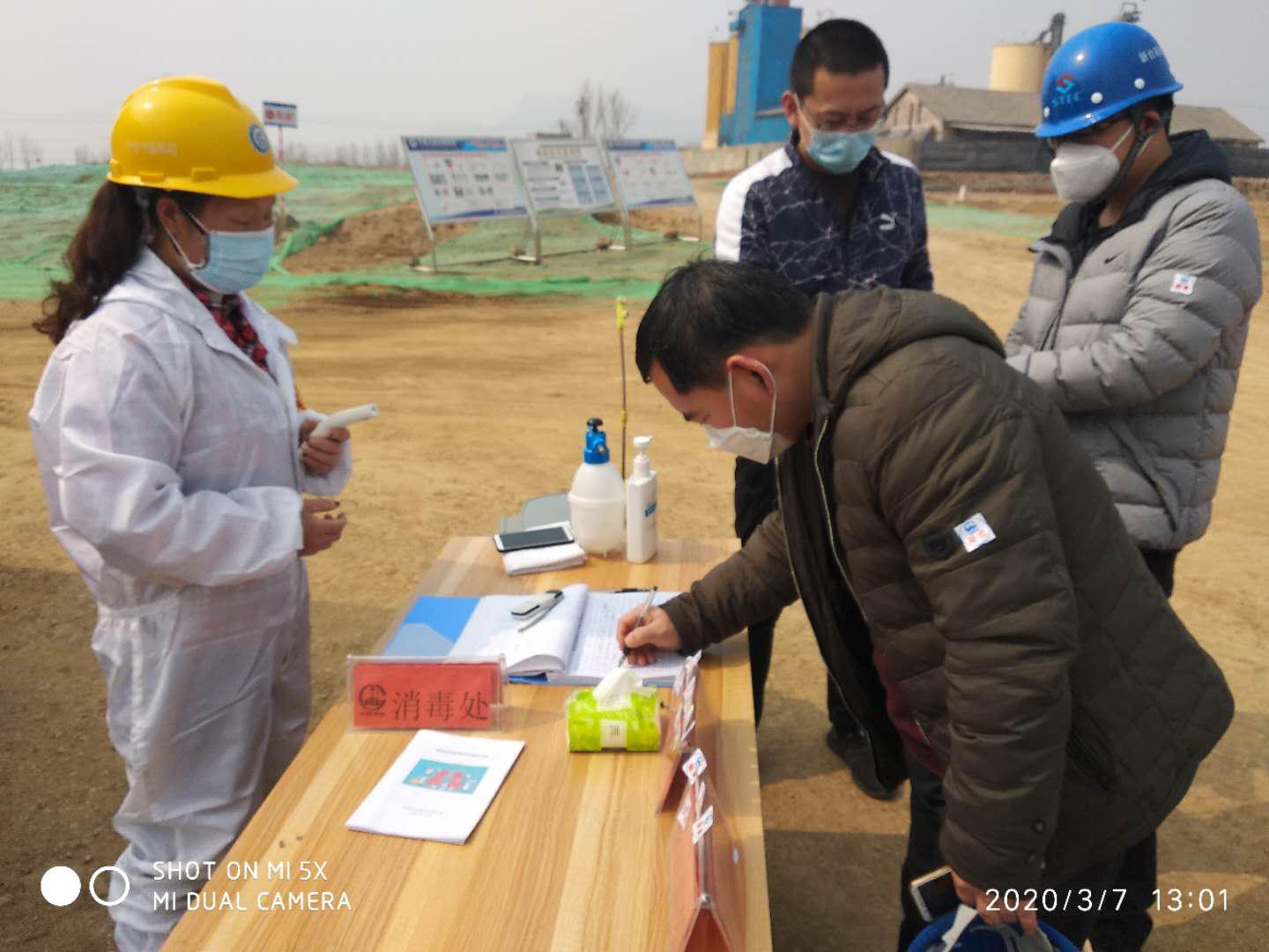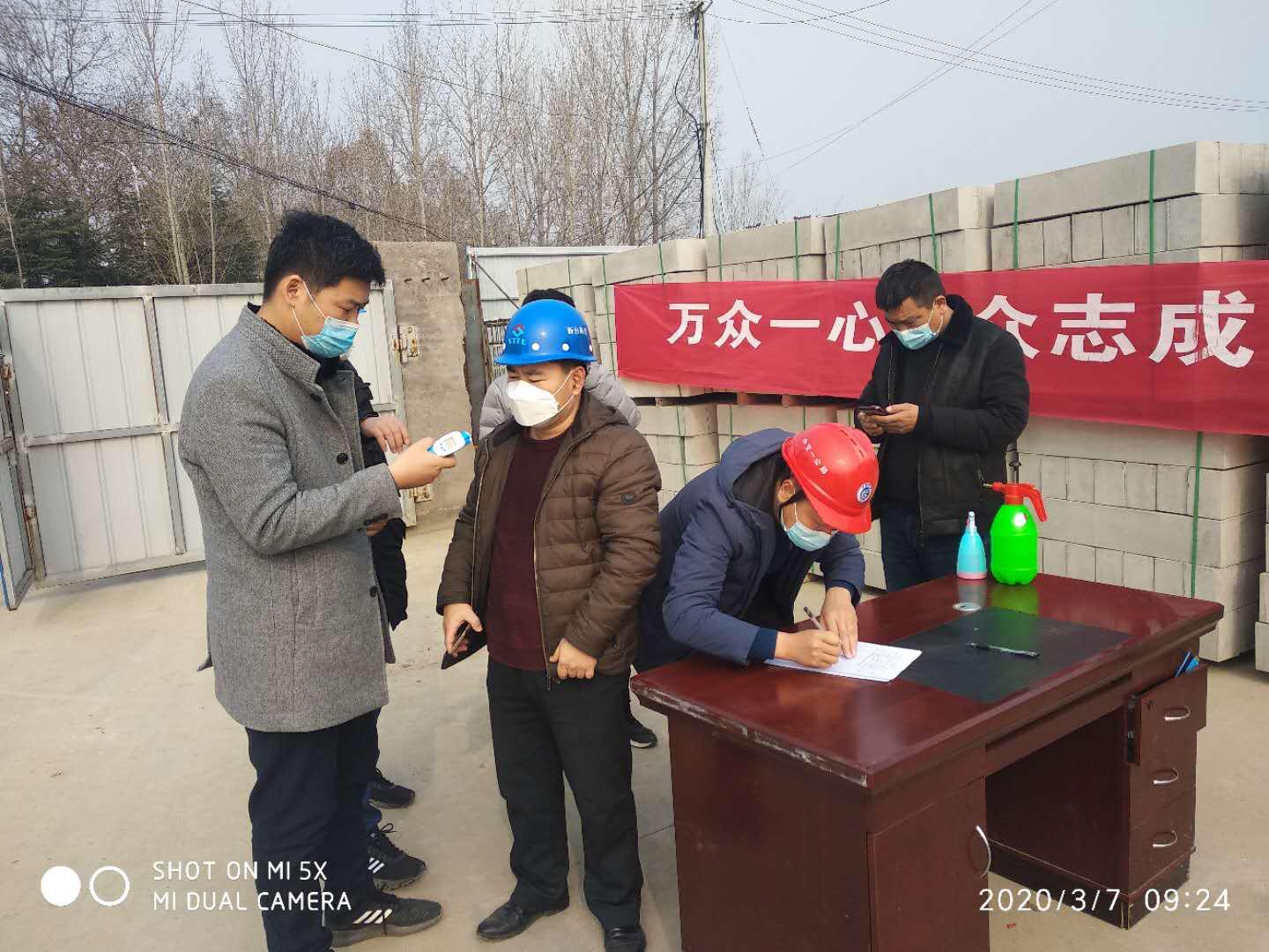 在项目部门口,总监办一行认真检查了出入口防控卡点,要求工作人员加强值班值守,对进入人员测量体温,详细登记,仔细消毒,严防可疑人员进入。