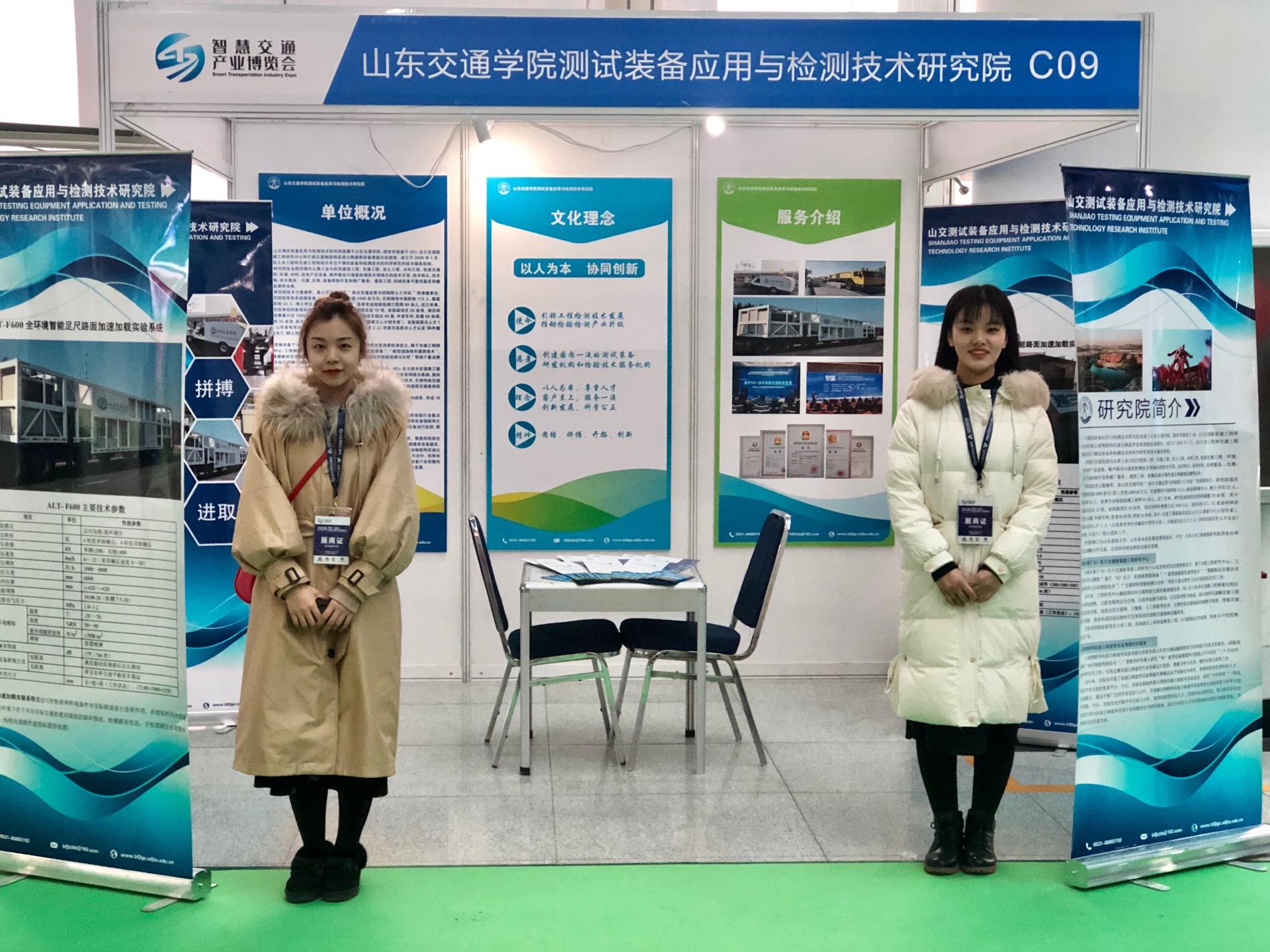 2020年12月9日-11日,由山东公路学会主办,山东高速集团、山东交通学院、山东省交通科学研究院联合主办的2020中国(山东)智慧交通产业博览会在济南国际会展中心隆重举行。我校测试装备应用与检测技术研究院作为参展商之一,参与了此次博览会。