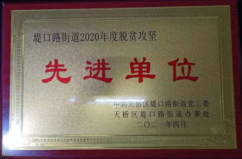 喜讯!公司获得堤口路街道2020年度脱贫攻坚“先进单位”和经济社会发展“先进个人”荣誉称号