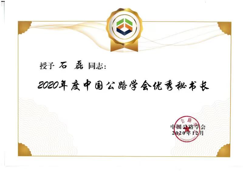 我公司总经理石磊荣获“2020年度中国公路学会优秀秘书长”