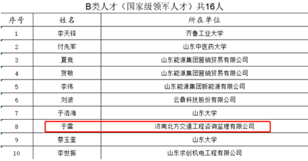 近日,从2022年济南市高层次人才分类认定第四批通过人员公示名单中获悉,中心(公司)引进的高端人才、“长江学者奖励计划”获得者于雷教授顺利通过2022年济南市高层次人才分类认定公示,被认定为B类人才(国家级领军人才)。