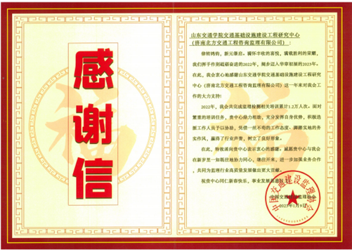 近日,中心(公司)收到中国交通建设监理协会的感谢信,信中对我中心(公司)在2022年度监理检测相关培训的工作给予充分肯定和高度评价。
