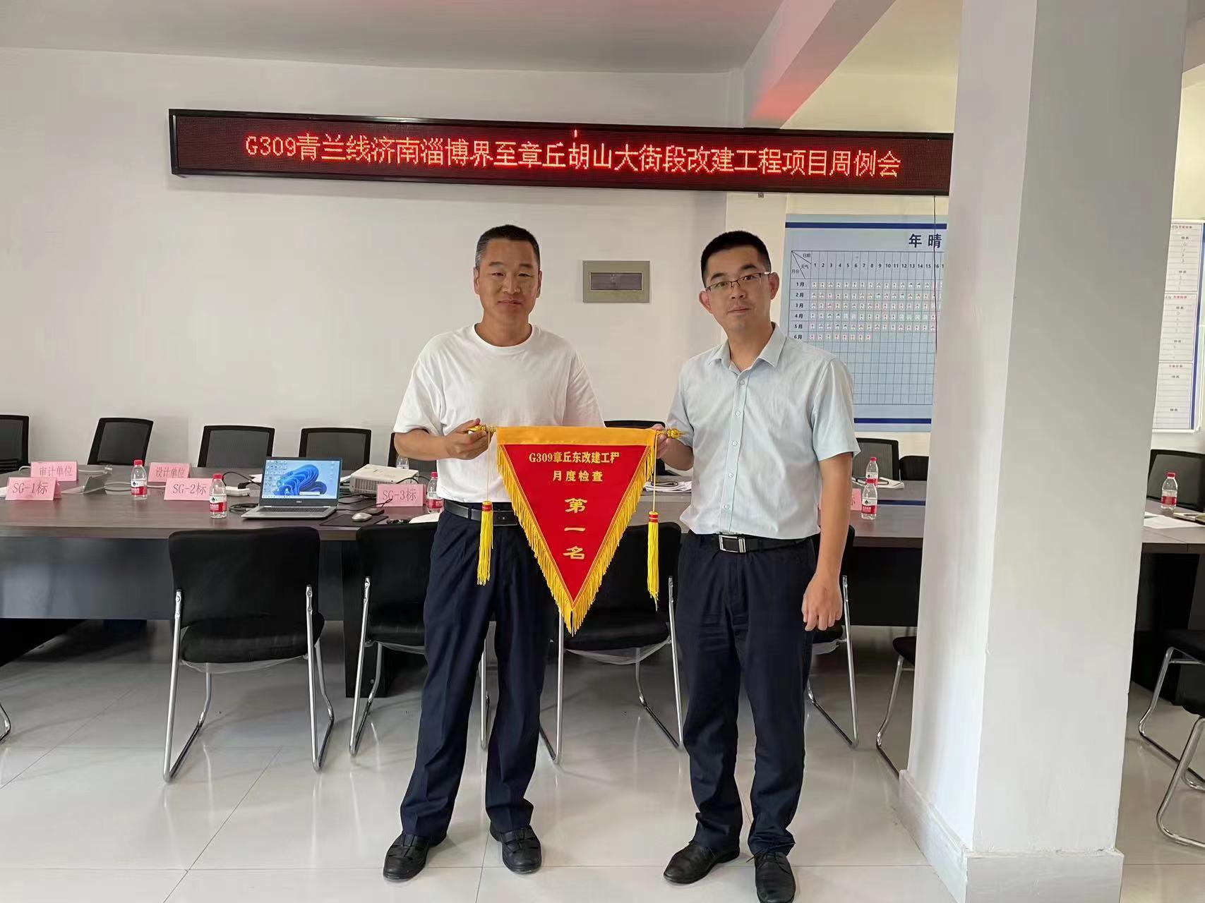 近日,我公司G309青兰线济南淄博界至章丘胡山大街段改建工程JL-2驻地办连续两次在建设办组织的月度检查中获得第一名。