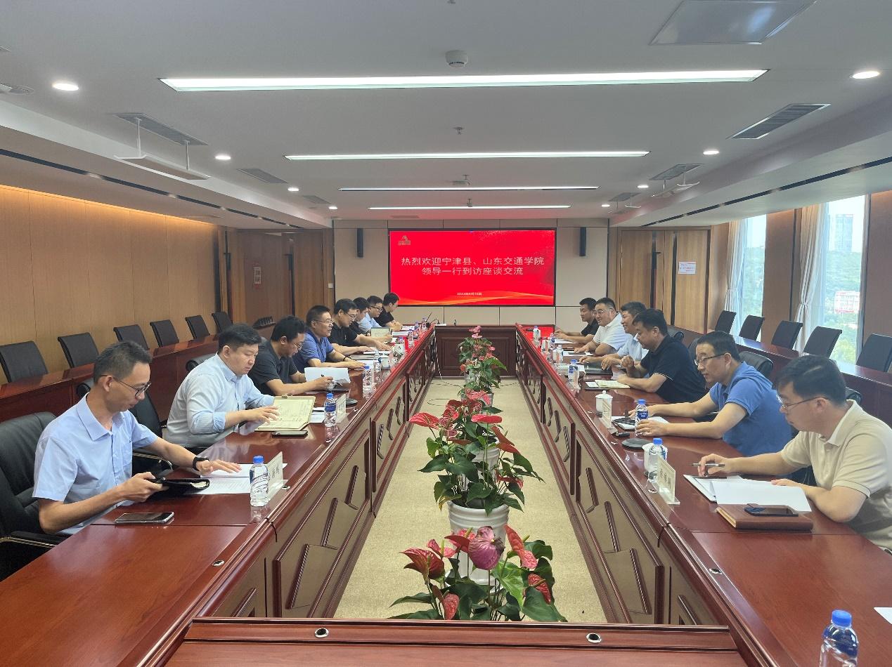 近日,中心主任石磊与省派宁津四进工作支队队长、山东国惠投资控股集团有限公司办公室主任张玉才,宁津县委常委、副县长常健勇,宁津县委常委、县办公室主任、县开发区党工委书记蔡润等一行7人前往山东高速集团创新研究院开展合作交流活动。创新研究院院长王福海,副院长辛公锋以及研究院相关部门负责同志参加科研成果转化交流活动。