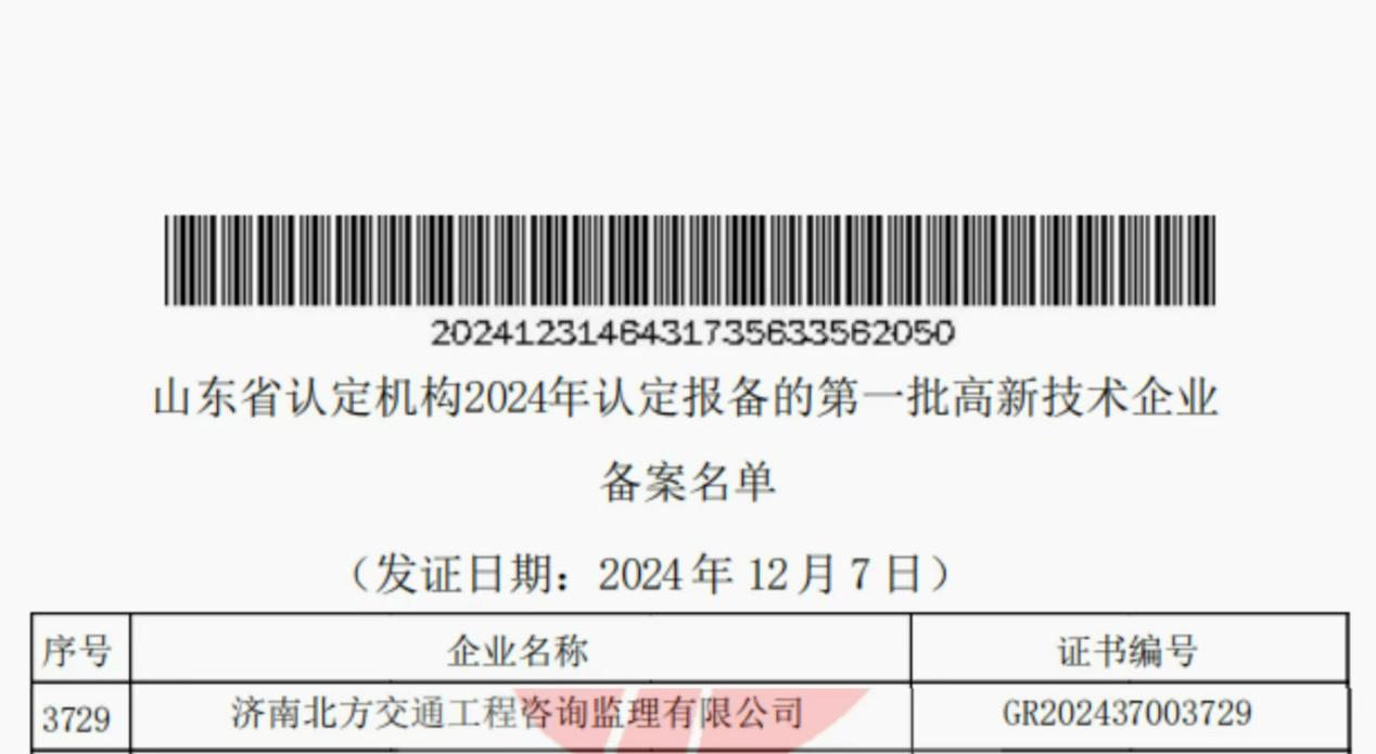 中心(济南北方交通)顺利通过2024年高新技术企业复审