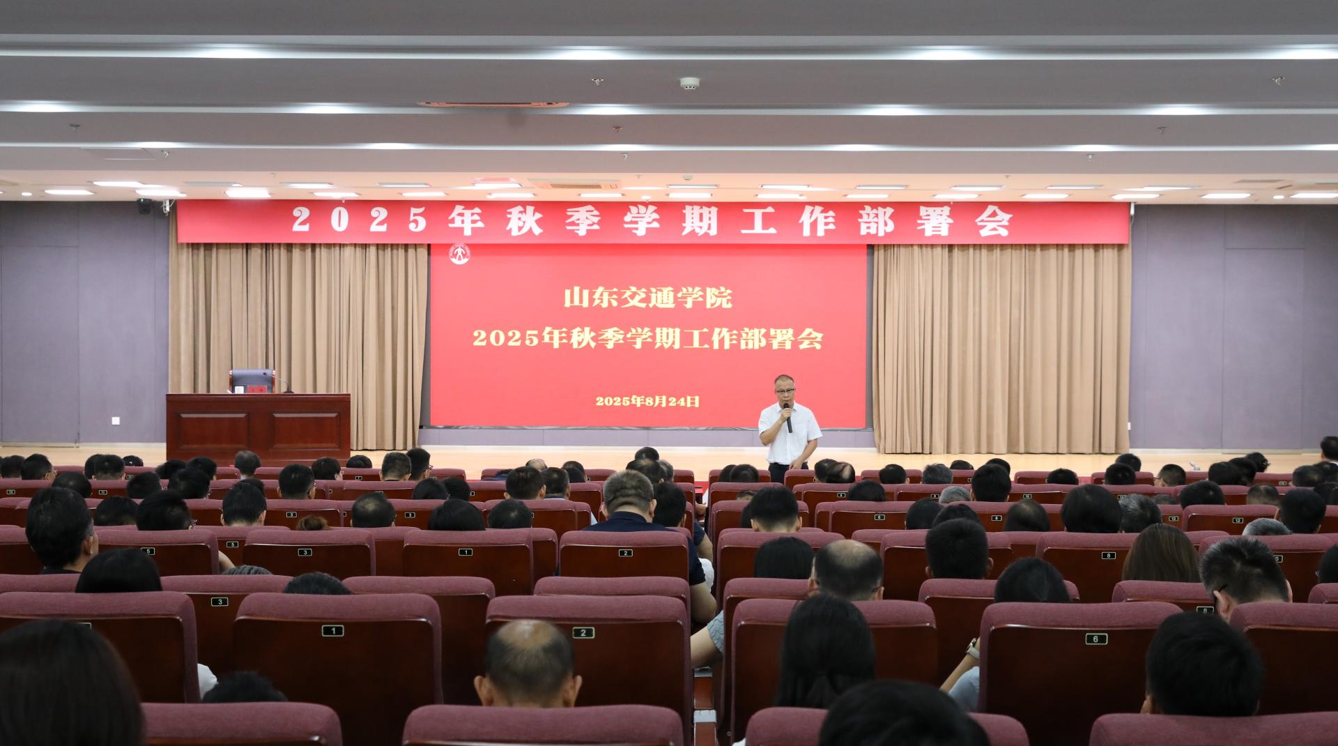 8月24日上午,学校2025年秋季学期工作部署会在长清校区明德楼101报告厅召开。学校党委领导班子成员王伟、孔伟金、李贞涛、刘世杰、姜华平、王保群、李秀领、徐静、张萌萌、王兴盈、刘庆波出席。会议由党委副书记李贞涛主持。