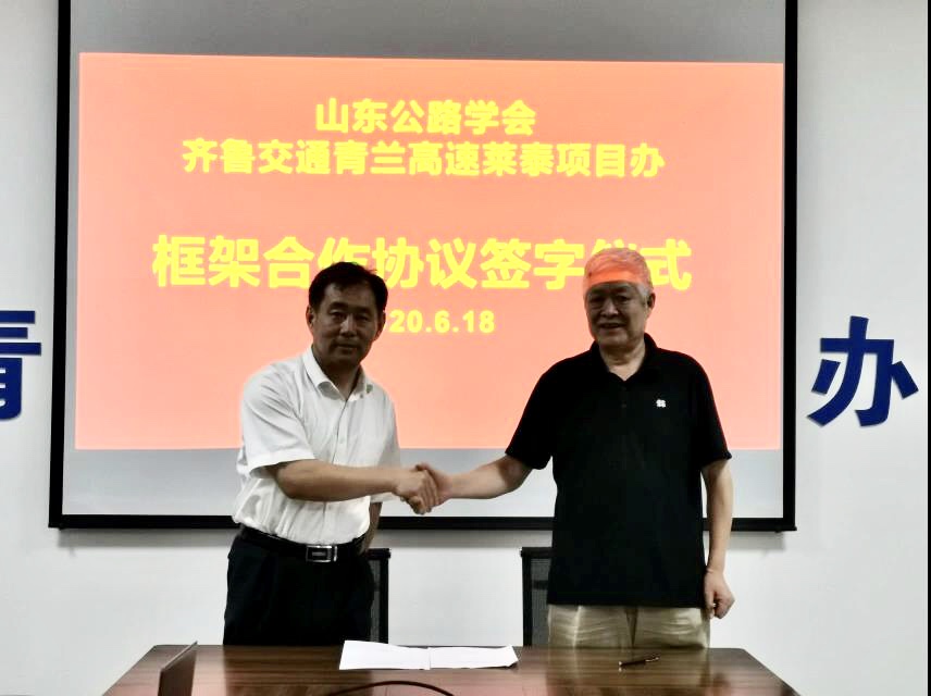 会议最后,山东公路学会与青兰高速公路莱芜至泰安段改扩建工程项目办在会议现场进行了框架合作协议签字仪式。活动现场就技术支持、人才培养以及新技术、新材料推广等方面达成合作协议,为进一步在交通行业推广应用新技术、实现交通智能化奠定了良好基础,也为促进相关技术人员拓宽视野、丰富知识、吸收国际先进理念,提升交通行业安全技术水平发挥了积极作用。